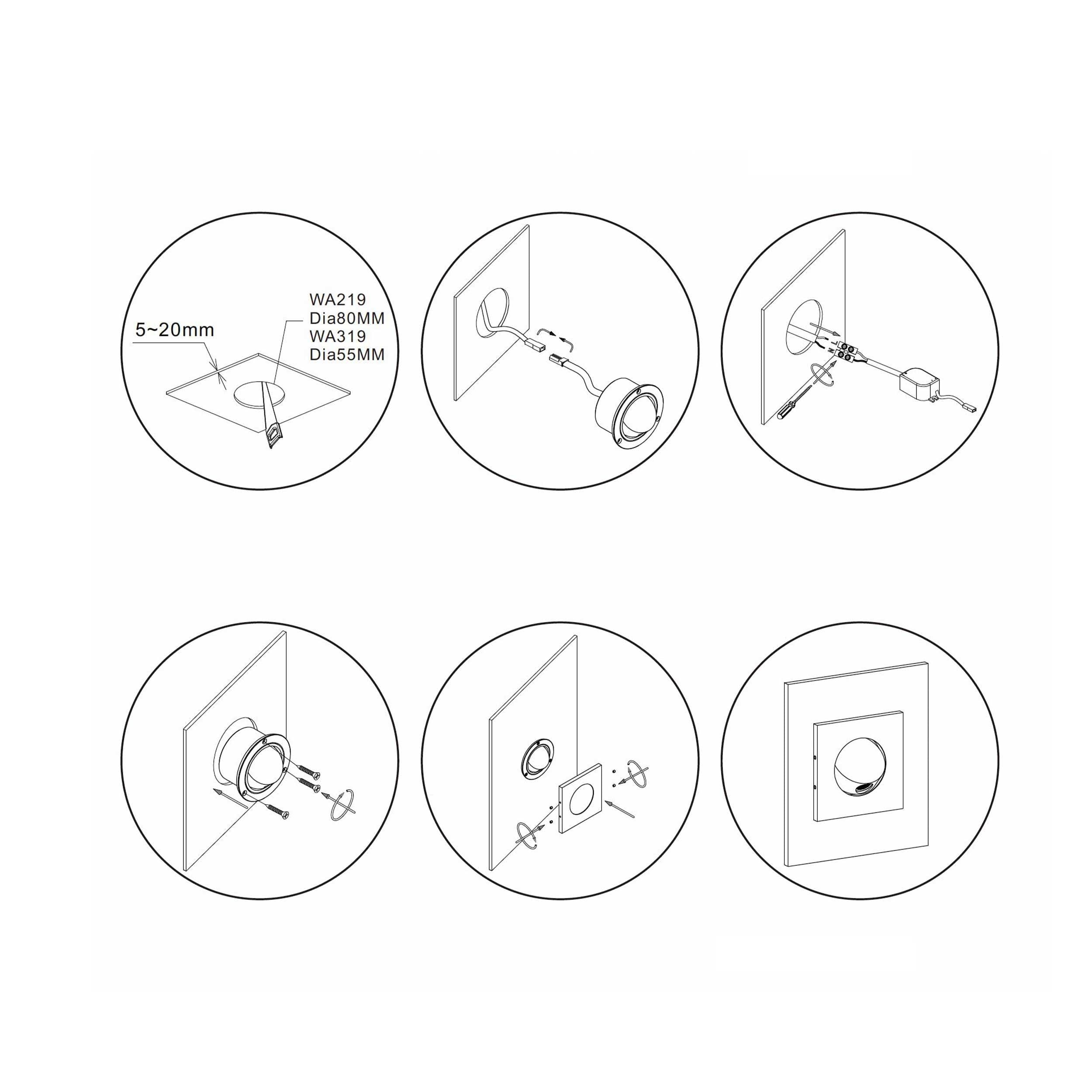 The body of the lighting is made of high quality aluminium with anti-corrosive and antioxidant surface treatment, which ensures long life even in intensive operation. Thanks to the recessed installation, requiring a hole diameter of 80 mm and a minimum mounting depth of 50 mm, light is ideal for recessed installation in furniture such as headboards or hotel panels.
