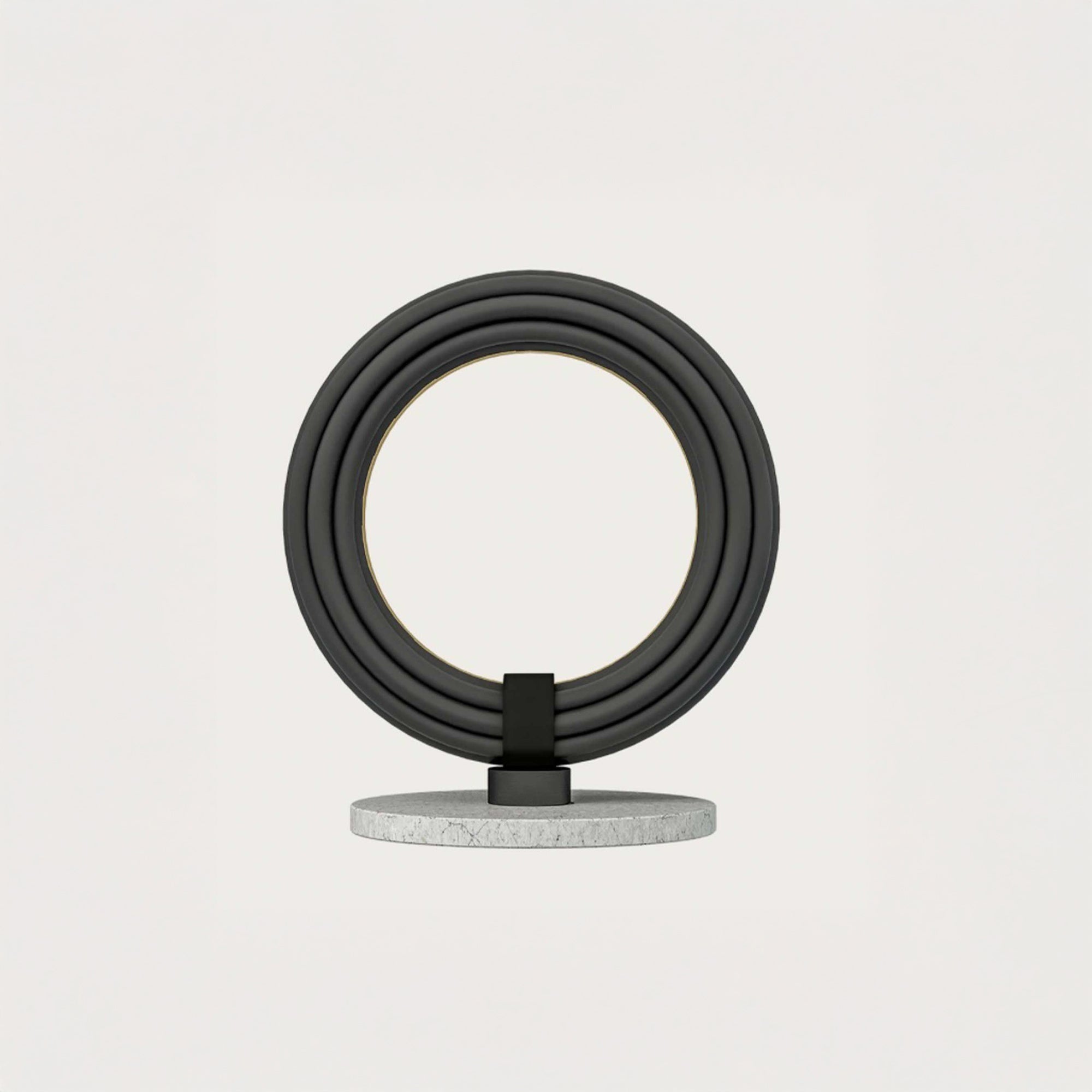 A JF Sevilla által tervezett Elli asztali lámpa az Aromas del Campo cégtől elegáns, modern változata a klasszikus "gyűrűs" lámpának. A márvány és a fém kombinációjának köszönhetően időtálló dizájn kiegészítőjeként funkcionál a belső térben, miközben a közvetett fény meleg és barátságos légkört teremt. A lámpa közvetlenül a zsinóron található dimmer kapcsolóval szabályozható, és két változatban kapható: patinázott arany fehér márványtalppal vagy matt fekete fekete márványtalppal. A lámpa 8 W-os SMD LED-et használ , 2700K színhőmérsékletű és 720 lm fényáramú, ideális a nappaliba, hálószobába vagy munkaterületre.