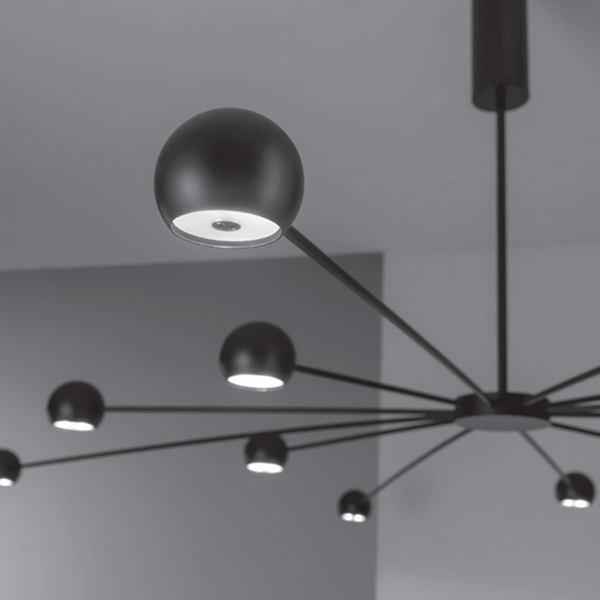 A BMB Progetti által tervezett Atrax függőlámpa az olasz Zava márkától egy dekoratív és jellegzetes lámpatest, amely különböző hosszúságú és görbületű fémprofilokból áll, amelyek gömb alakú fénytesteket hordoznak. Ez a dinamikus és elegáns kialakítás lenyűgöző fény-árnyék játékot hoz létre, és erős vizuális benyomást kelt a térben. Az Atrax ideális éttermekben, szállodákban, csarnokokban és otthonokban, ahol esztétikus fókuszpontként tűnik ki. A kollekció minimalista falra és padlóra szerelhető változatokat is tartalmaz, amelyek fémprofilt és fénygömböt mint szóróanyagot kombinálnak.